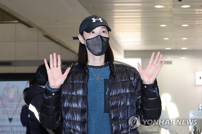 (영종도=연합뉴스) 임화영 기자 = 한국 여자배구 간판 김연경이 중국여자배구 슈퍼리그를 마친 뒤 10일 오후 인천국제공항을 통해 귀국하고 있다. 2022.1.10