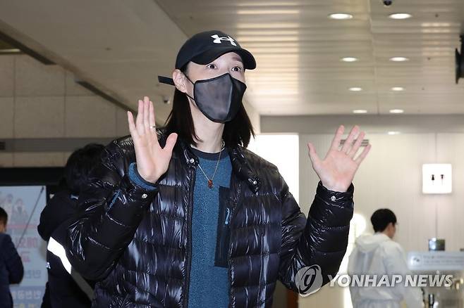(영종도=연합뉴스) 임화영 기자 = 한국 여자배구 간판 김연경이 중국여자배구 슈퍼리그를 마친 뒤 10일 오후 인천국제공항을 통해 귀국하고 있다. 2022.1.10