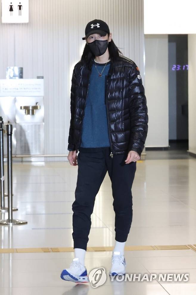 (영종도=연합뉴스) 임화영 기자 = 한국 여자배구 간판 김연경이 중국여자배구 슈퍼리그를 마친 뒤 10일 오후 인천국제공항을 통해 귀국하고 있다. 2022.1.10