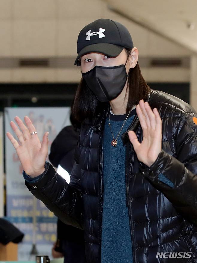 [인천공항=뉴시스] 김병문 기자 = 2021-2022 중국여자프로배구 슈퍼리그를 마친 김연경이 10일 오후 인천국제공항을 통해 귀국하고 있다. 2022.01.10. dadazon@newsis.com