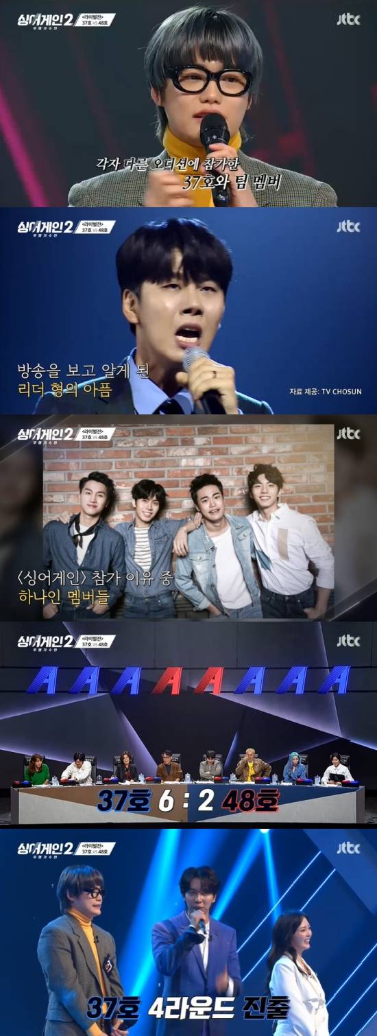 특히 37호는 '걱정말아요 그대'를 선곡한 이유에 대해 "타 방송사에서 오디션을 하고 있는데 팀 멤버가 참가를 하고 있다. 저는 그 정도로 힘들어하는 줄 몰랐는데 계속 아파했더라. 그걸 본 다음에 굉장히 마음이 아팠다"라며 남다른 사연을 고백했고, 37호가 언급한 멤버는 '국민가수'에 출연 중인 박장현으로 밝혀졌다.