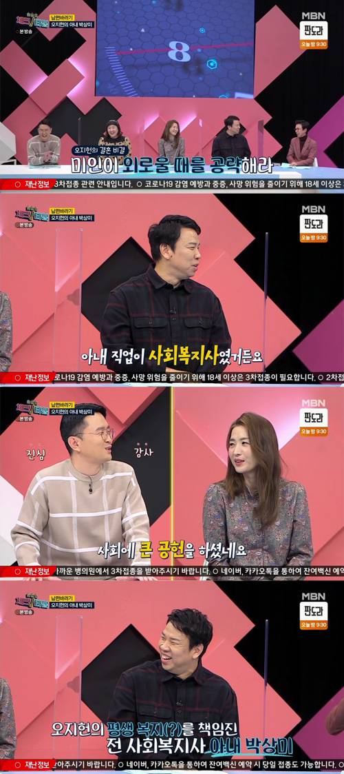 이날 오지헌은 박상미와 결혼에 성공한 비결에 대해 "당시 아내가 너무 외로워서. 외로울 때를 공략을 해야 된다"고 알렸다.