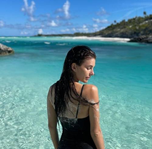 모로네는 11일(한국시간) 개인 SNS에 에메랄드빛 바다에서 서 있거나 주워 포즈를 취한 모습을 선보였다.