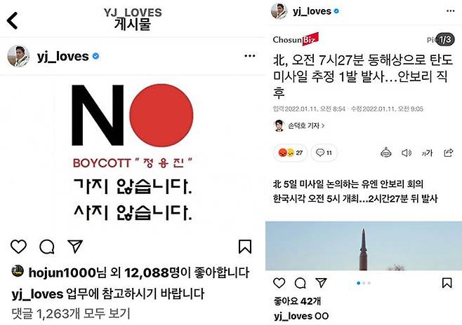 정 부회장은 오늘(11일) 오전 자신의 인스타그램에 '보이콧 정용진, 가지 않습니다. 사지 않습니다'는 문구가 담긴 이미지를 올리며 "업무에 참고하시기 바랍니다"라고 적었습니다.