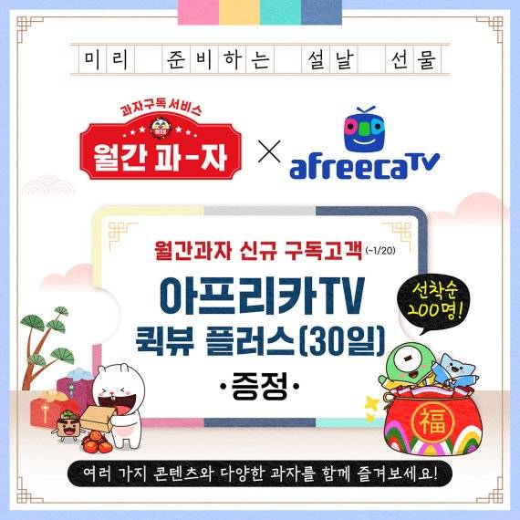 '월간과자 X 아프리카TV' 구독 서비스는 롯데제과 공식온라인몰 '롯데스위트몰'에서 오는 20일까지 신청할 수 있다.