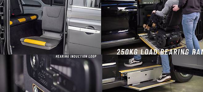무엇보다 TX5는 장애인 휠체어 탑승 시설이 기본으로 갖춰져 차별 없는 이동이 가능한 게 특징이다. 뒷좌석 아래에 휠체어 탑승 슬라이드가 내장돼 있어 휠체어에 앉은 채로 장애인 스스로 차에 오를 수 있는 것. 또한 슬라이드는 걸음이 불편한 사람들을 위해 탑승 계단으로도 변신이 가능해 국내 교통약자 이동이 한층 편리해질 수 있다는 게 코액터스의 설명이다. 또한 승차석 내 온도조절스위치 등은 터치 방식이지만 시각장애인을 위한 점자 표시도 마련돼 있다. 이와 함께 보행이 불편한 사람이 스스로 쉽게 탑승할 수 있는 회전 시트도 있어 모두의 이동 가치가 극대화 됐다.