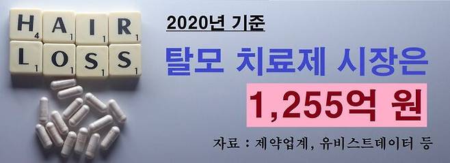 일단, 탈모약 시장 규모부터 알아봤습니다. 헬스데이터 플랫폼인 유비스트 데이터(UBIST DATA)와 제약업계는 2020년 기준 탈모약 시장 규모를 추산한 적이 있습니다. 1,255억 원 정도였습니다.