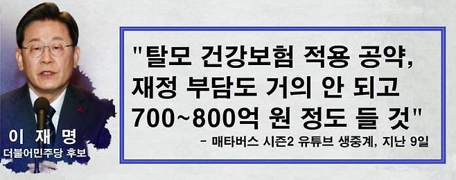 실제 2020년 기준 건강보험 재정은 75조 원 정도로, 이 후보가 말한 700~800억 원은 전체의 0.1% 수준입니다.