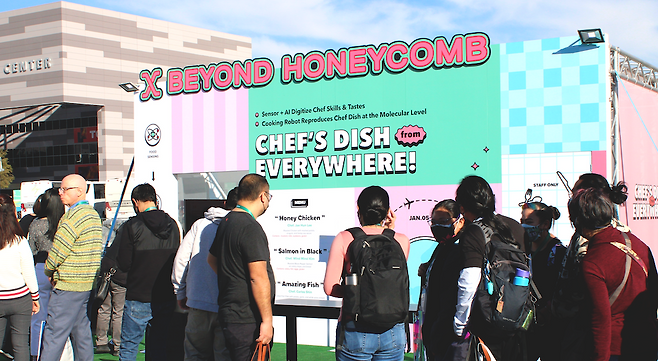 CES 2022의 메인 전시관 ‘LVCC(라스베이거스 컨벤션 센터)’ 앞에 위치한 비욘드허니컴의 부스는 AI셰프로 재현한 K-푸드 ‘짜파구리’를 맛보기 위한 방문객 및 미디어 취재진으로 성황을 이뤘다.