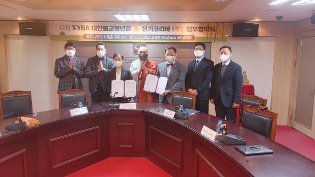 한국불교를 선도하는 KYBA대한불교청년회(이하, 대불청)가 1월 7일(금) 오후 2시 전법회관 3층 회의실에서 구강 제품을 공급하는 청년 불자 후원 기업 신기코리아와 업무 협약을 체결했다고 11일 밝혔다.