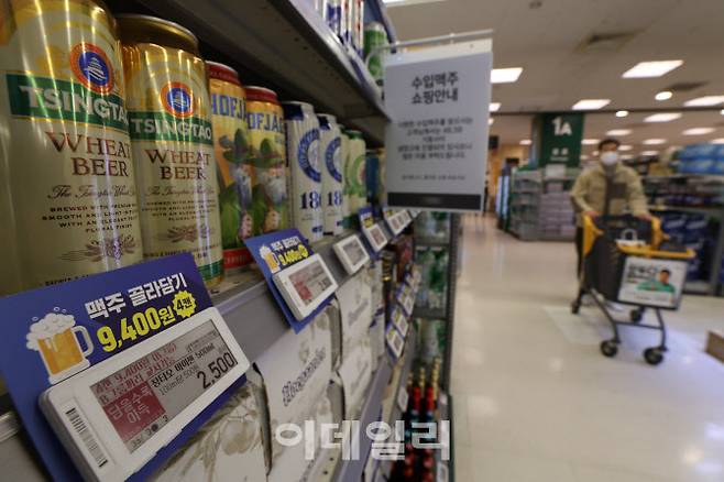 [이데일리 이영훈 기자] 오는 4월부터 맥주 주류세 인상이 예고된 가운데 11일 서울 한 대형마트에 맥주가 진열돼 있다.