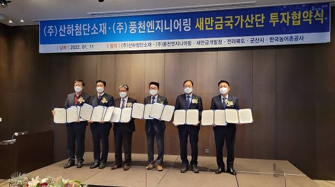 이날 협약식에는 ㈜산하첨단소재 장재영 대표이사, ㈜풍천엔지니어링 이병천 대표이사, 양충모 새만금개발청장, 신원식 전라북도 정무부지사, 강임준 군산시장 등 30여명이 함께 했다.
