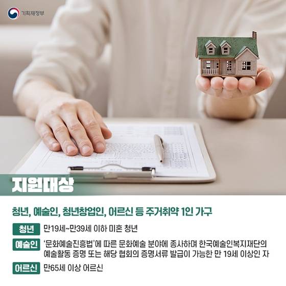 청년, 예술인, 청년창업인, 어르신 등 주거취약 1인 가구