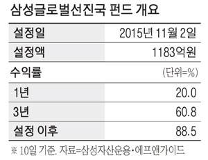 2015년 설정된 삼성글로벌선진국 펀드는 설정 후 지난 10일까지 수익률 88.5%를 기록했다. 최근 1년 수익률은 20% 수준이다. 세계적인 자산운용사 미국 DFA(Dimensional Fund Advisor)가 위탁운용하는 재간접형 상품이다.