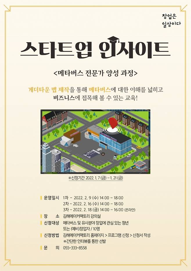 진흥원 관계자는 "전문가 양성과정으로 지역 내 창업기업과 예비창업자들이 메타버스를 보다 쉽게 활용할 수 있기를 기대한다. 오는 18일 김해창업카페에서 '플랫폼 비즈니스'와 관련한 특강도 진행한다"고 말했다.