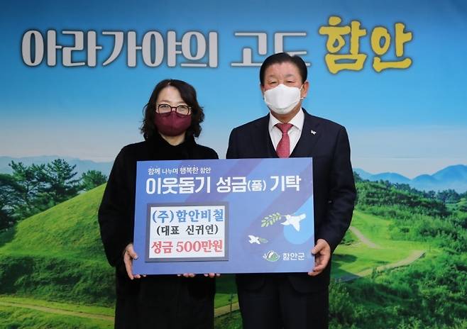 함안군 칠서면에 소재한 비철금속 제련 업체인 ㈜함안비철(대표 신귀연)은 11일 새해를 맞아 추운 날씨에 도움이 필요한 이웃을 돕기 위한 성금 500만원을 함안군에 전달했다.