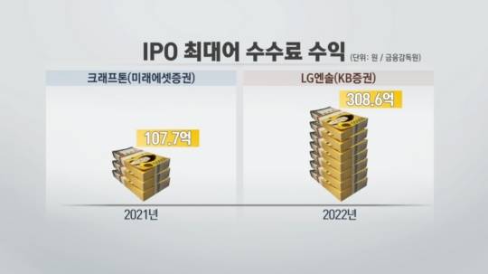 이는 국내 IPO수수료 역대 최대 규모로 지난해 최대어였던 크래프톤 상장 당시 미래에셋증권이 챙겼던 107 억원의 세 배에 달하는 규모입니다.