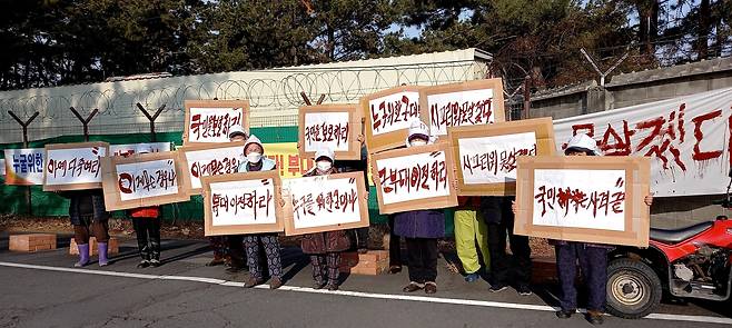 참다못한 주민들은 지난해 11월 22일부터 마을 앞 공군부대 앞에서 '군부대 이전'을 내걸고 무기한 농성을 시작했다. 50여 일째 방공유도탄사령관 면담을 요구하고 있지만 묵묵부답이다.