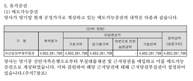 동업자 안 씨가 이자를 밀리면서 채권이 부실화되자 최은순의 가족회사였던 이에스아이앤디는 신안저축은행으로부터 채권을 사들는데, 이때 다시 돈을 빌려준 것도 신안저축은행이었다. 2015년도 이에스아이엔디 감사보고서에 따르면, 이에스아이엔디는 신안저축은행으로부터 사들인 부실채권 48억5천여만 원어치를 ‘매도가능증권’으로 계상했다. 그리고 이 증권을 담보로 38억5천만 원을 대출한다.