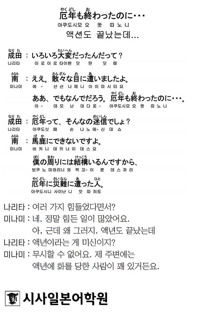 [시사일본어학원의 초단기 일본어 회화] 액년도 끝났는데..