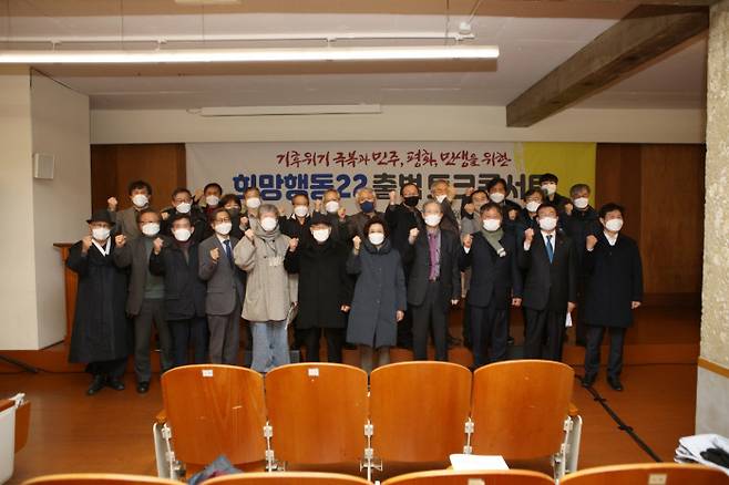 박정희, 전두환 독재정권에 맞서 싸우며 민주주의와 통일, 민중생존권 운동에 헌신했던 이석표, 이동섭, 정병문, 최연 등 각계각층 사회인사들은 이번 대선을 맞아 시대정신이 실종된 채 오직 정치세력간의 저열하고 혼탁한 공방만이 난무하는 현실을 보면서 단순히 5년 임기의 새 지도자를 뽑는 행사가 아니라, 나라의 미래에 관한 국민의 의사를 집약하여 발전의 동력으로 삼는 중대한 계기로 만들고자 ‘기후위기 극복과 민주, 평화, 민생을 위한 희망행동22’를 출범하였다.
