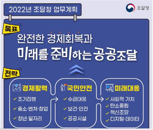 먼저, 공공조달을 통한 경제활력 회복 선도에 조직을 역량을 집중한다. 올해 전체 조달계약(54조4000억원)의 63%에 달하는 34조2000억원을 상반기에 조기 집행하고, 상반기에 조달 요청하는 공공기관에 조달수수료를 최대 10% 할인하는 방안을 기획재정부와 협의, 추진할 계획이다.