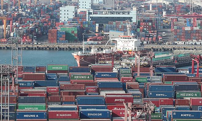 | 부두에 가득한 수출입 화물 11일 부산항 신선대와 감만부두에 수출입 화물이 가득 쌓여 있다. 관세청은 이번달 1∼10일 수출액(통관기준 잠정치)이 139억달러로 지난해 같은 기간보다 24.4%(27억4000만달러) 늘었다고 밝혔다. 연합뉴스 |