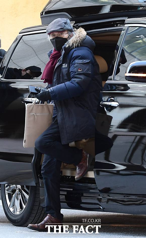 [더팩트ㅣ이새롬 기자] '오징어게임'으로 미국 골든글로브 TV드라마 부문 남우조연상을 수상한 배우 오영수가 11일 오후 서울 종로구 대학로 티오엠씨어터에서 열린 연극 '라스트 세션' 출연을 위해 극장에 도착해 차량에서 내리고 있다.