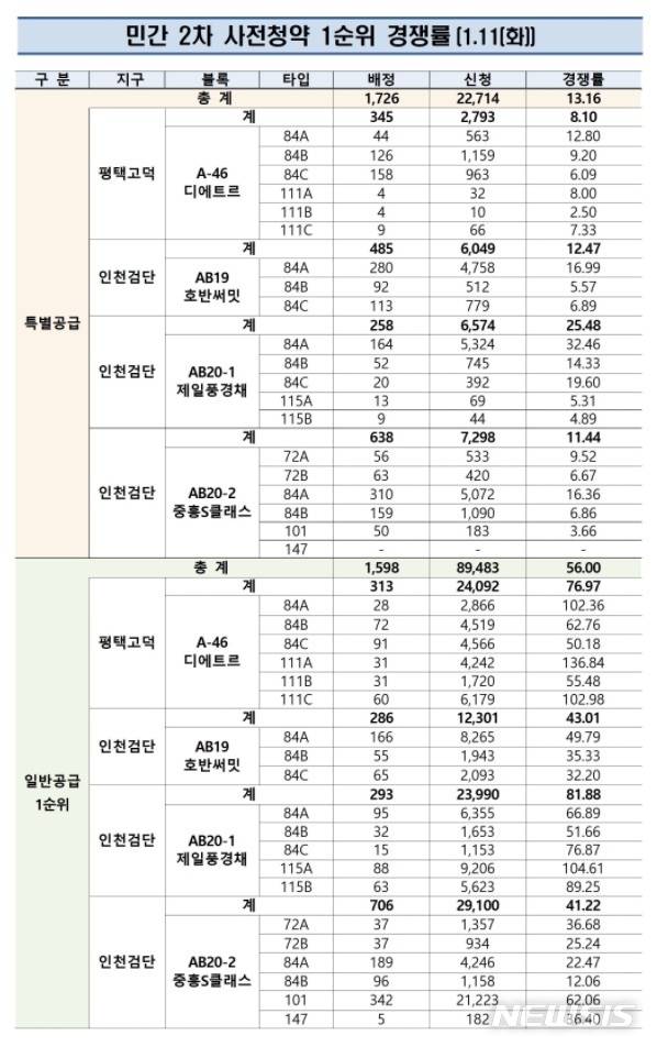 2차 민간 사전청약 일반공급 1순위 경쟁률이 56대 1로 집계됐다.