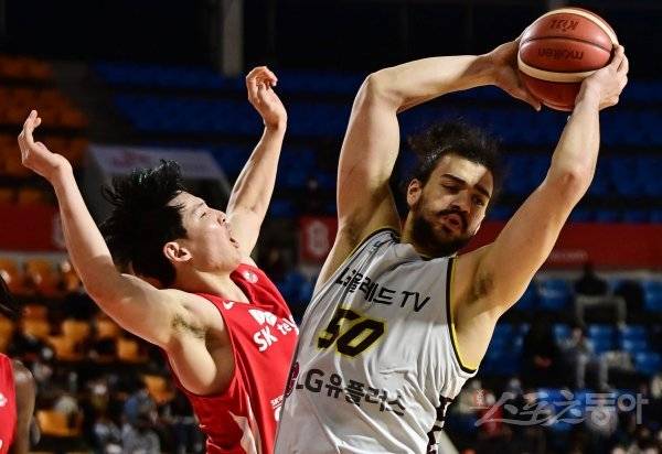 11일 서울 잠실학생체육관에서 열린 ‘2021-2022 KGC 인삼공사 정관장 프로농구’ 서울SK와 창원LG의 경기에서 LG 마레이가 리바운드를 하고 있다.