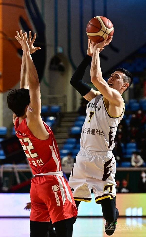 11일 서울 잠실학생체육관에서 열린 ‘2021-2022 KGC 인삼공사 정관장 프로농구’ 서울SK와 창원LG의 경기에서 LG 이관희가 SK 수비 앞에서 슛을 하고 있다.