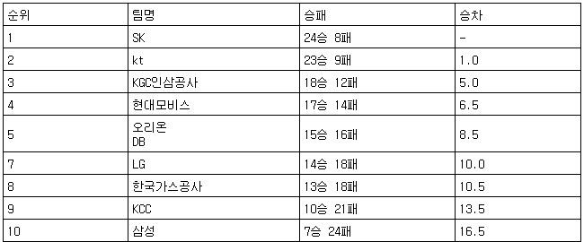 [프로농구 중간순위] 11일