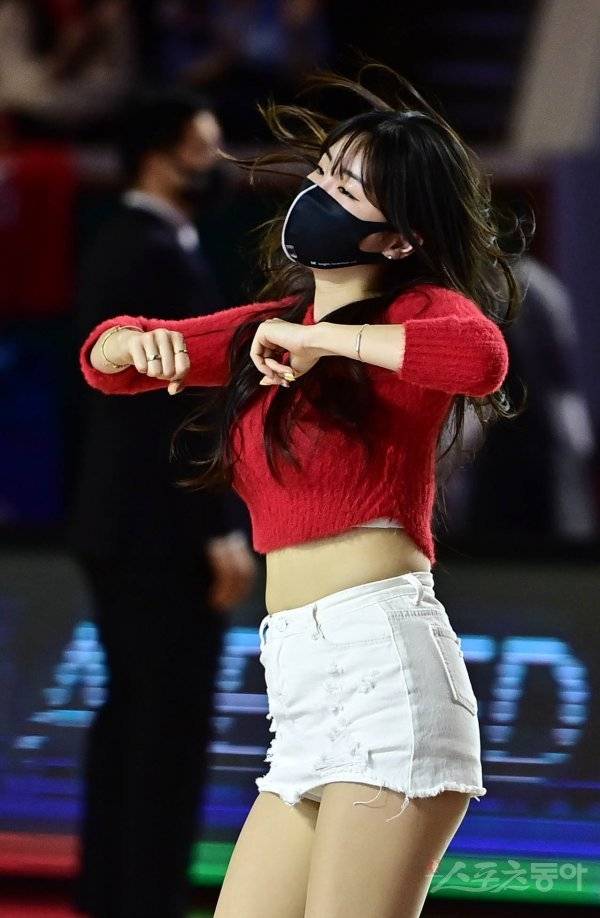 11일 서울 잠실학생체육관에서 열린 ‘2021-2022 KGC 인삼공사 정관장 프로농구’ 서울SK와 창원LG의 경기에서 SK 치어리더 안지현이 공연을 펼치고 있다.