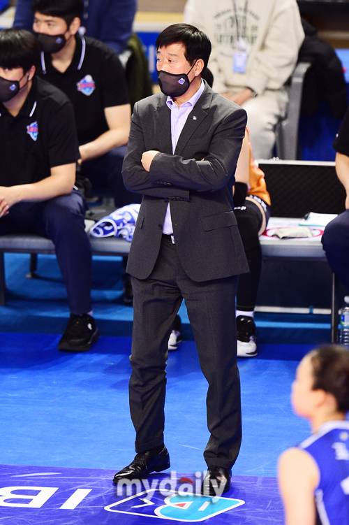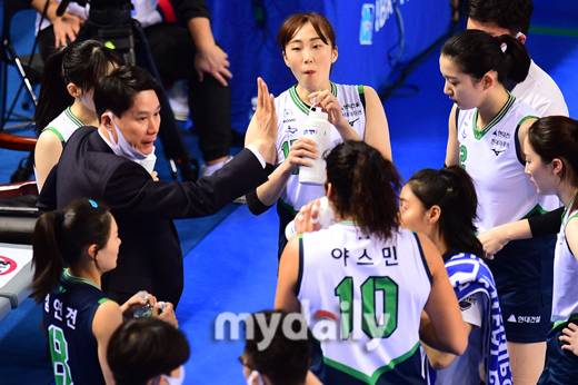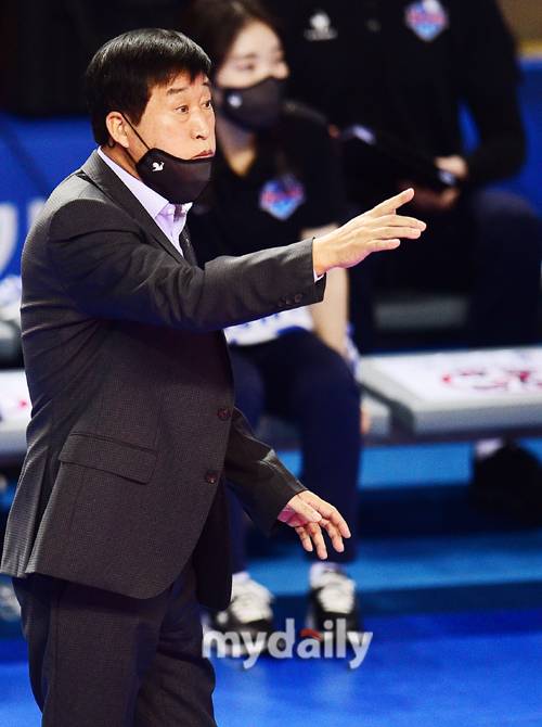 [마이데일리 = 화성 곽경훈 기자] IBK기업은향 김호철 감독과 현대건설 강성현 감독이 11일 오후 경기도 화성종합실내체육관에서 진행된 '2012~2022 도드람 V리그' IBK기업은행-현대건설의 경기에서 작전 지시를 하고 있다.