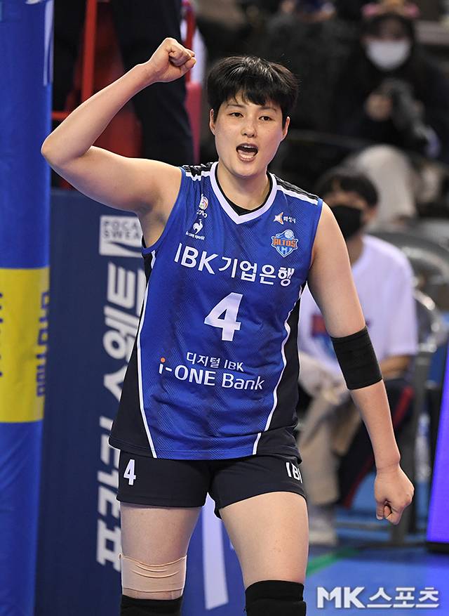 기업은행 김희진이 득점에 기뻐하고 있다.