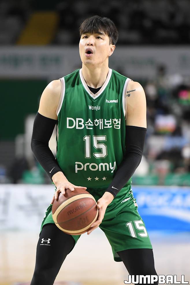 11일 원주종합체육관에서 열린 2021-2022 KGC인삼공사 정관장 프로농구 원주 DB와 전주 KCC의 경기, DB 김종규가 자유투를 시도하고 있다.