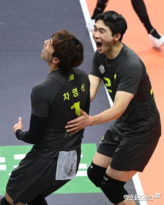 전광인 '차영석 너무 잘했어'[포토]
