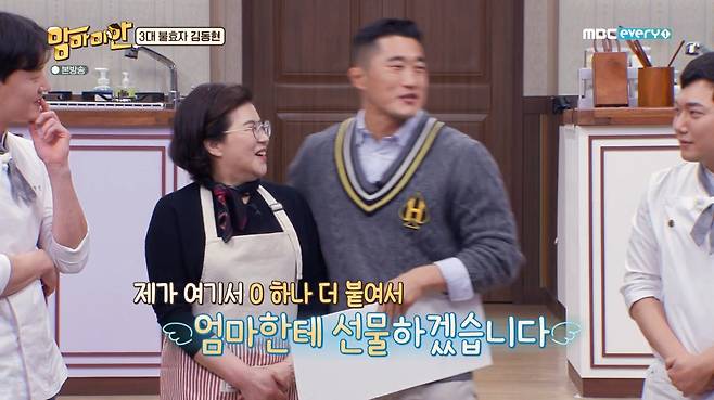 한편 김동현은 엄마 손맛 찾기에 실패하며 3대 불효자에 등극했다. 평소보다 맛이 조금 짰다고. 효도여행권 100만원을 획득하지 못한 그는 "엄마한테 0하나 더 붙여서 1000만원 선물하겠다"는 진짜 효심을 드러내 훈훈한 마무리를 맺었다.