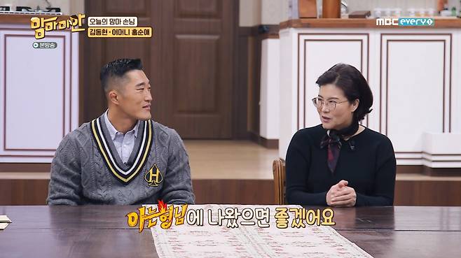 11일 오후 방송된 MBC에브리원 '맘마미안'에는 UFC 파이터 출신 예능인 김동현과 어머니 홍순애 씨가 출연했다.