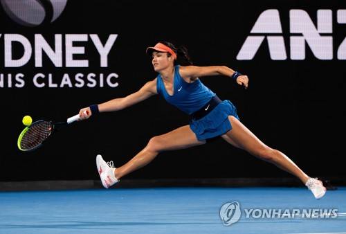 epaselect epa09678388 Emma Raducanu of Great Britain in action during her women's singles Round of 32 match against Emma Raducanu of Great Britain on Day 2 of the Sydney Tennis Classic at Ken Rosewall Arena, in Sydney, Australia, 11 January 2022. EPA/JAMES GOURLEY AUSTRALIA AND NEW ZEALAND OUT
