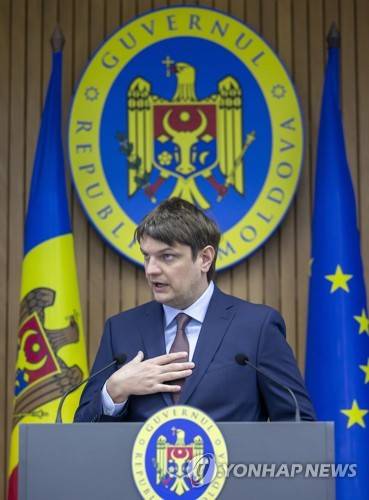 epa09678566 Andrei Spinu, the Minister of Infrastructure and Regional Development of Moldova, speaks during a press-conference in the Government building in Chisinau, Moldova, 11 January 2022. Moldova still faces energetical crisis despite of having a new gas supply contract signed with Russia. The gas price in Moldova rose to 646 US dollar per cubic meter and people will have to pay more than double the price for gas. More than 80 percent of the country's electric energy comes from the Transnistria region, which is supported by Russia, and it is expected that the prices for electric energy will also double. EPA/DUMITRU DORU