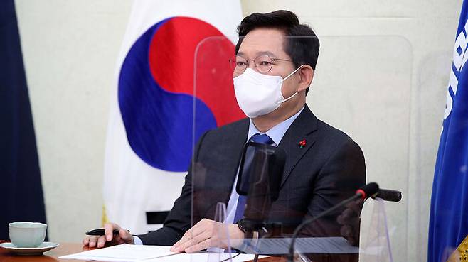 민주당 송영길 대표가 방송뉴스에 출연해, 이재명 후보가 문재인 정부에서 탄압을 받았다고 발언해 논란이 일고 있습니다.
