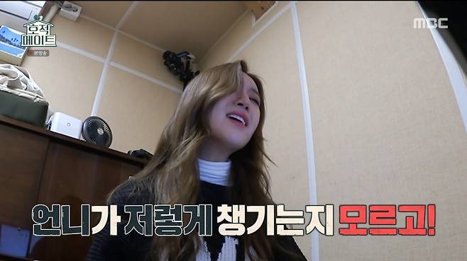 과자 부스러기도 대충 털어내는 동생의 모습에 홍지윤은 헛웃음을 지었고, 김정은은 "저는 침대에서 과자 먹는 건 용납 못한다"며 홍지윤의 마음에 공감했다. 하지만 홍주현은 여기에서 멈추지 않고 언니 화장품으로 메이크업을 하고 언니 옷을 마음대로 입은 채 외출했다.
