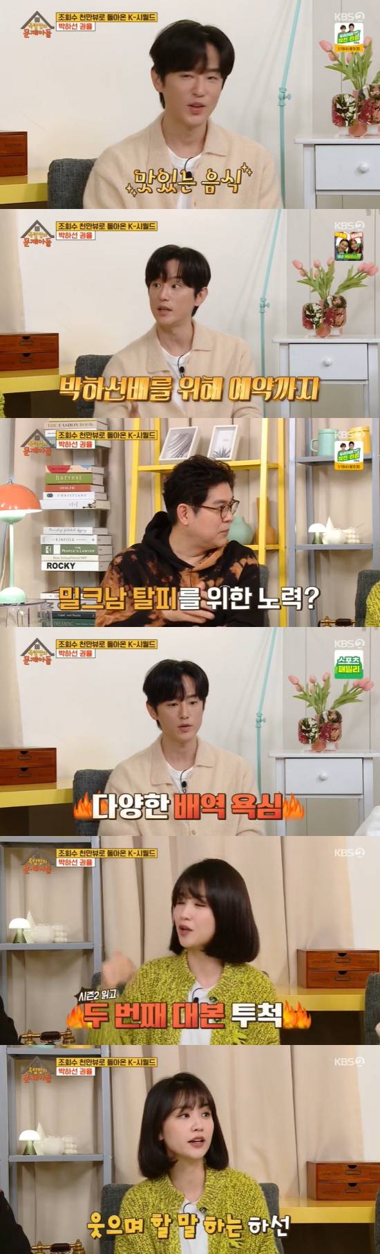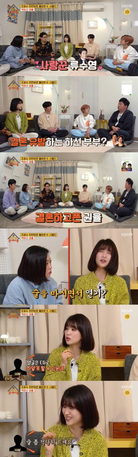 그뿐만 아니라 박하선은 애주가라고 밝혔고, 김숙은 "'혼술남녀' 할 때 진짜 실제로 술 마시면서 하신 게 맞냐"라며 궁금해했다.