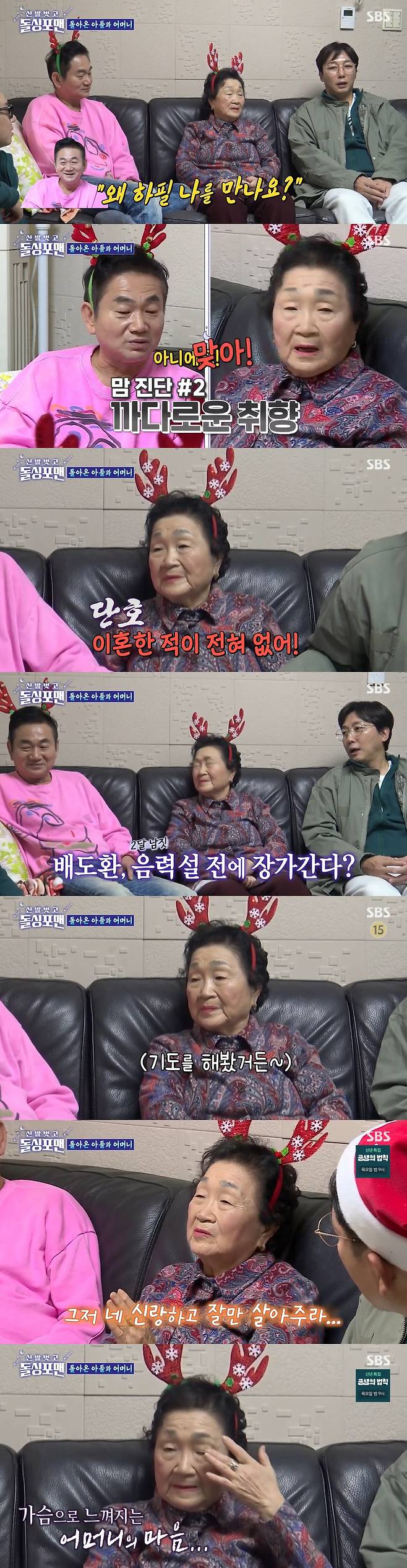 또 배도환 어머니는 아들의 재혼에 대해 "올해 안에 재혼할 수 있을 거 같다. 내 예감이 그렇다. 기도를 해봤는데 응답이 왔다"며 자신했다.