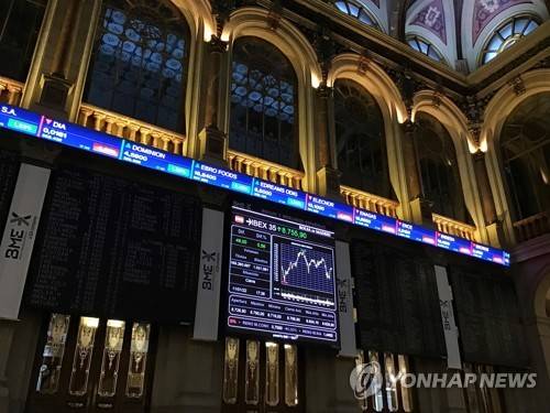 epa09679178 Screens display charts with the evolution of index IBEX 35 at Madrid's Stock Exchange Market, Spain, 11 January 2022. The index IBEX35 rose by 0.56 percent at the closing of the session to reach 8.755,9 points. EPA/Vega Alonso