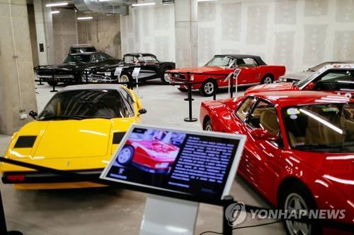 epa09679327 General view of the 'Automotive Icons' exhibition at the Norblin Factory in Warsaw, Poland, 11 January 2022. Some 50 unique cars with a total value of PLN 55 million (?12,113,878) were presented at the exhibition. The exhibition shows various stages of the development of modern motorization, from oldtimers to modern cars equipped with the latest technologies. EPA/ALBERT ZAWADA POLAND OUT