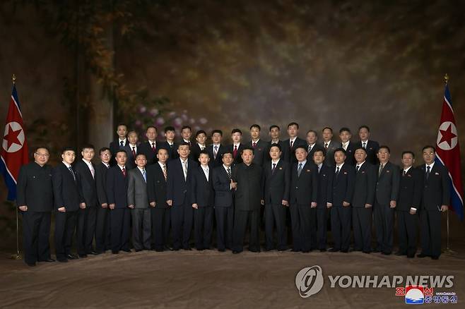 (평양 조선중앙통신=연합뉴스) 북한 국방과학원이 11일 극초음속미사일 시험발사를 김정은 국무위원장이 참관한 가운데 진행해 성공시켰다고 조선중앙통신이 12일 보도했다. 미사일시험발사 관계자와 기념사진을 찍고 있는 김정은국무위원장. 2022.1.12