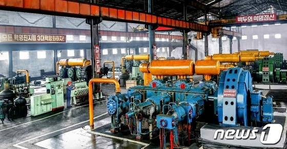 (평양 노동신문=뉴스1) = 북한 노동당 기관지 노동신문은 12일 중요 화학 제품 생산 부문에서 "인민 경제 여러 부문의 생산 활성화에 적극 이바지할 열의를 안고 힘차게 생산의 동을 높이 올리고 있다"라고 보도했다. 사진은 흥남비료연합기업소.