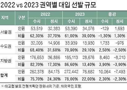 [2023학년도 대입 전략] 서울대·연세대·고려대 정시 선발비중 40% 넘어..7000여명 뽑는 의약학계열 지역인재 비중 확대